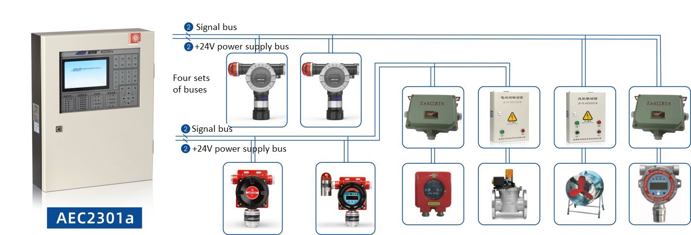 ● RS485 bus communication (standard MODBUS protocol) interface to realize communication with the host control system and networking with the fire and gas network system, to improve system integration.